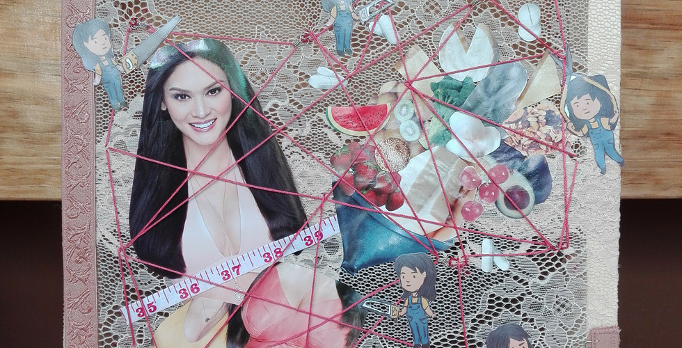 The works are composed of mixed media collages that display cutouts from magazines, thread, and digital works that are carefully combined to form pieces that comment on the issue about beauty and the standards set by society— how we are caged inside this idea of beauty influenced by media and how we should break away from it.